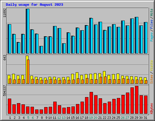 | Day | Hits | Files | Pages | Visits | Sites | KBytes | ||||||