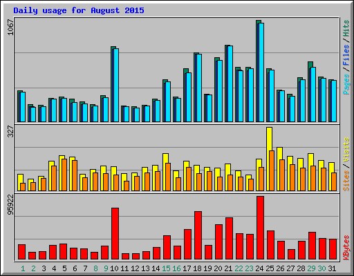 | Day | Hits | Files | Pages | Visits | Sites | KBytes | ||||||